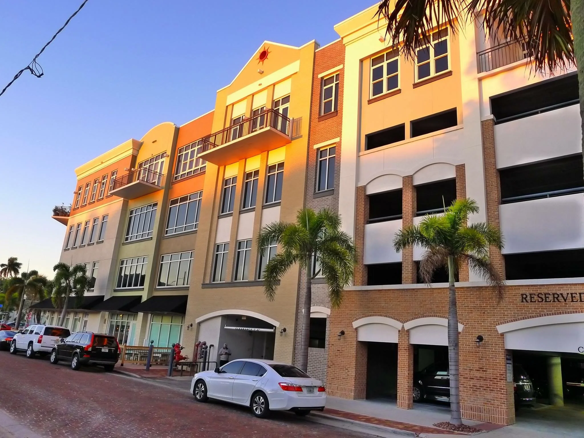 The covered parking garage has space for 110 cars and is attached to the Sunloft Center across all four floors.